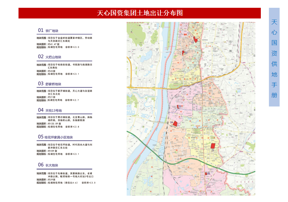 本次重點推介的長沙鋅廠地塊、火把山地塊、舒家橋地塊、天悅13號地塊、桂花坪家具小區(qū)地塊、長大地塊這六大地塊,分別位于外灘片區(qū)和省府片區(qū),每宗地塊都各具特色,借助天心區(qū)多元的產(chǎn)業(yè)生態(tài)、強勁的消費力以及顯著的人口吸附力,投資潛力巨大,是值得投資興業(yè)的優(yōu)質(zhì)標(biāo)的。